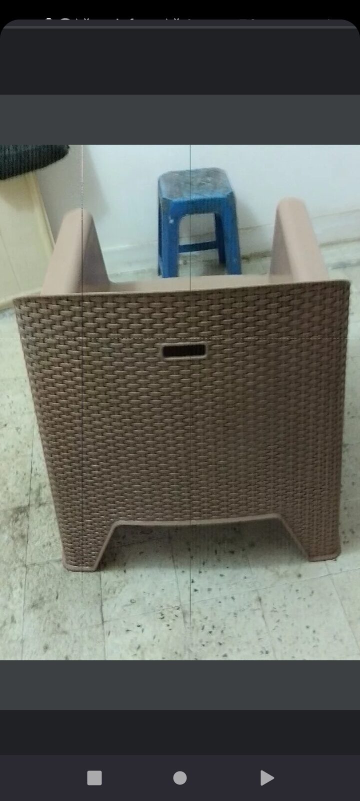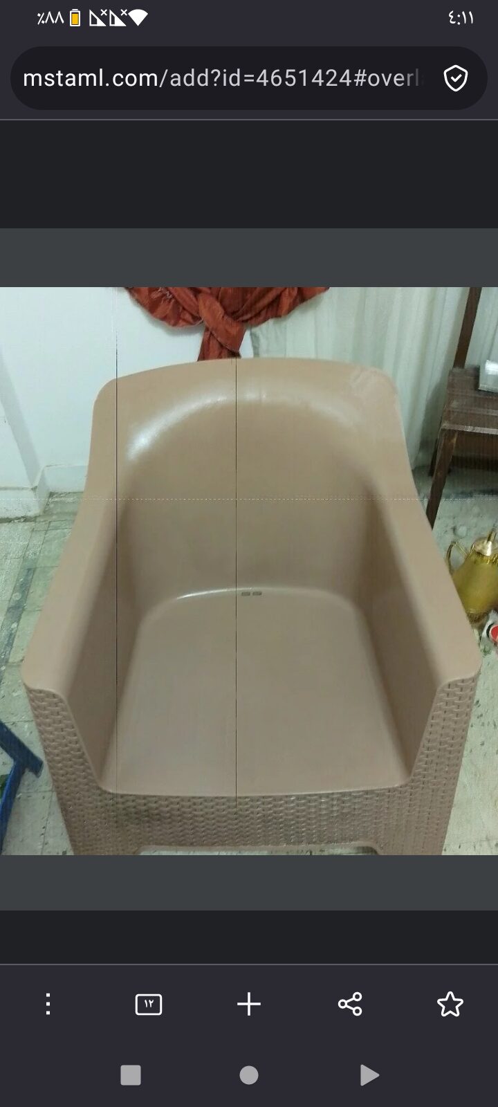 كرسي فوتيه بلاستيك قوي بحالة ممتازة ، لونه بيج ، لا يفرق شيء عن الجديد