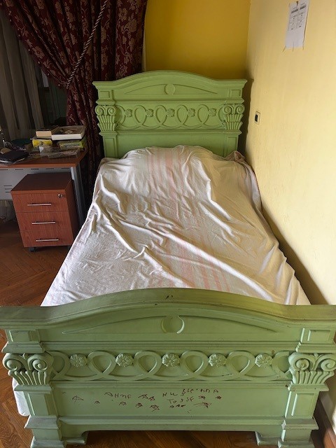 2 single beds with 2 comodes and their mattresses for sale in 6 October, suitable for kids, Green colour