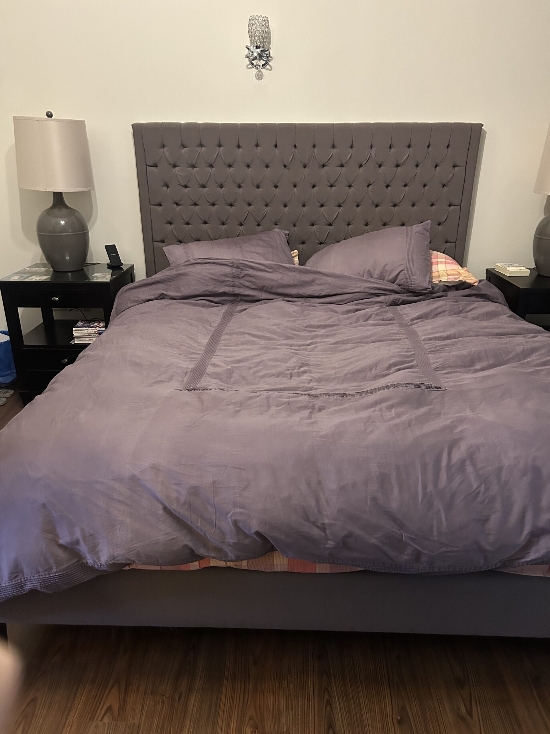180 by 200 with two side tables made of wood