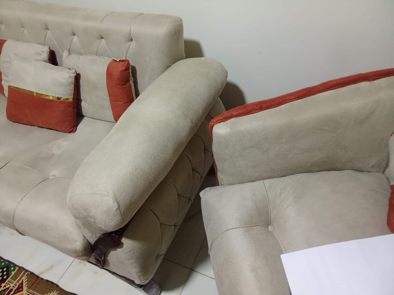 انتريه مودرن مميز جدًا بتصميم أنيق يناسب كل الأذواق 👌مكوّن من: كنبة كبيرة كنبة صغيرة 2 فوتيه 💥 المميزات: ألوان جذابة (نبيتي × بيج) قماش عالي الجودة ونضيف جدًا مريح ومناسب للاستخدام اليومي تصميم عصري يليق بأي ديكور 📌 الحالة: استعمال خفيف جدًا (بحالة م...