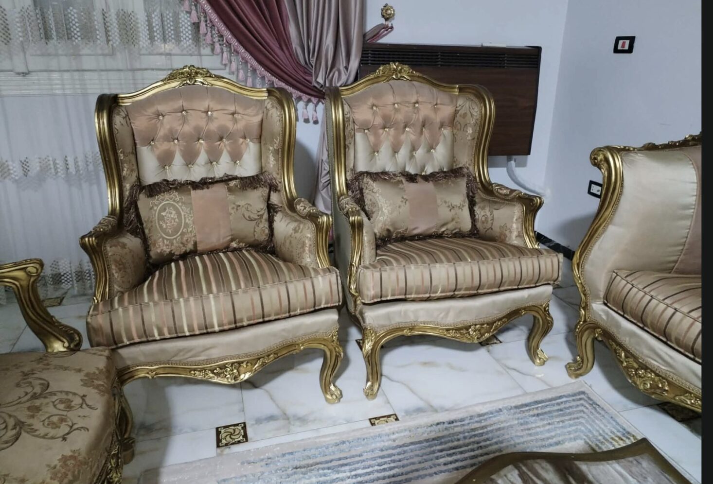 صالون كبير ومريح جدًا، خامة قوية وحالة ممتازه خشب زان.مناسب للصالات الواسعة، ونظيف ومحافظ عليه. بدون بقع أو قطع بدون كسور أو تلف جاهز للاستلام فورًامتاح للاستلام في أي وقت....